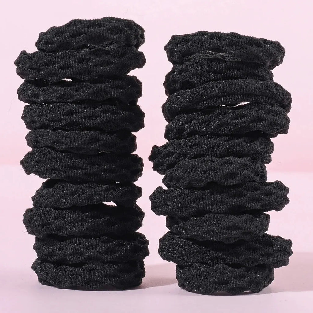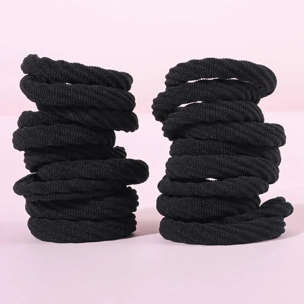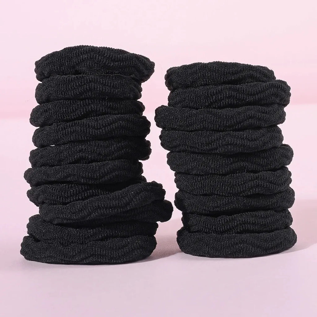Upgrade your hair accessories with this pack of 20 simple yet stylish elastic hair bands. Made from durable cotton blends, these solid-colour ponytail holders provide a secure and comfortable fit, perfect for everyday use or casual occasions.