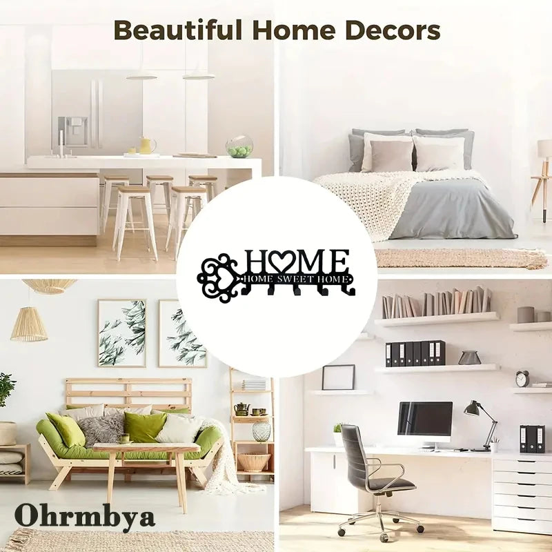 Add charm and organisation to your space with the 5 Hooks "Home Sweet Home" Metal Wall Hanger.