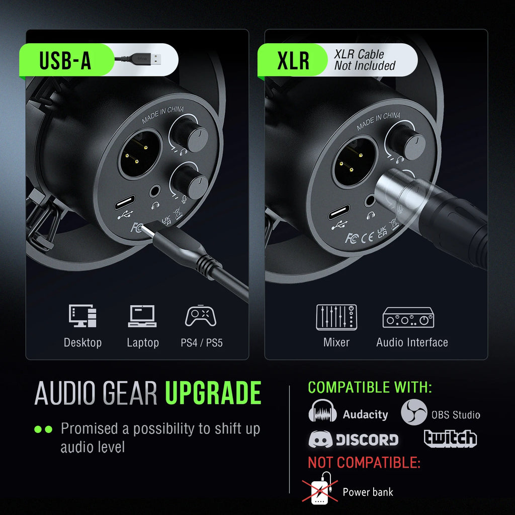 Featuring both USB and XLR connectivity, it offers seamless plug-and-play use with PCs and Macs while allowing future upgrades to audio interfaces or mixers.