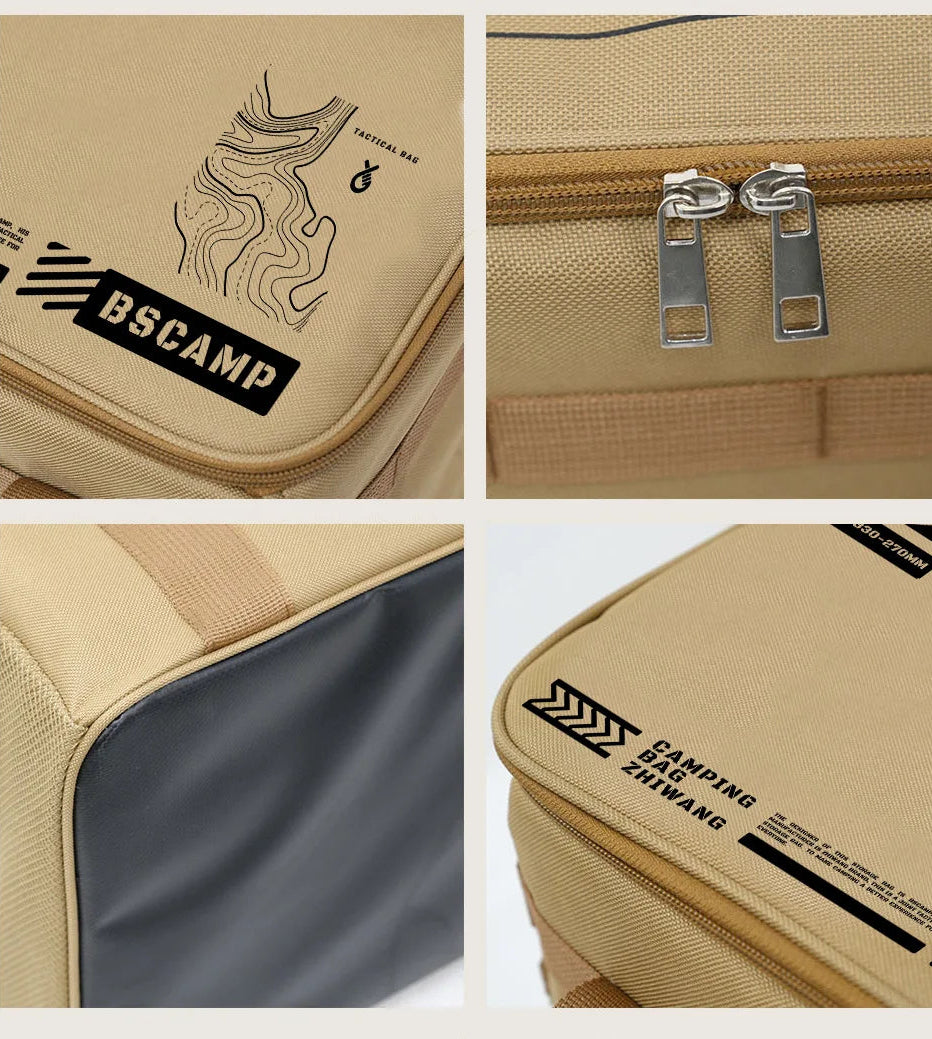 Built with durable waterproof fabric, shock-absorbing padding, and an adjustable internal layout, it is ideal for storing camping cookware, gas canisters, lighting equipment, tableware, and field tools.