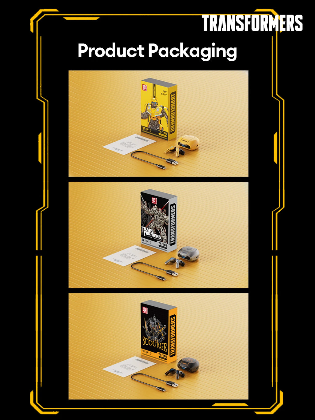 Designed with dual mode noise reduction, the TF-T06 blocks out distractions, ensuring crystal-clear audio and voice clarity. Enjoy rich, dynamic HiFi sound with deep bass and sharp treble, all in a stylish, Transformers-inspired design.